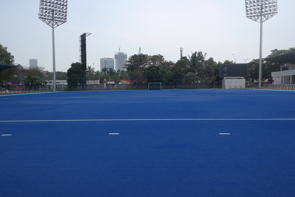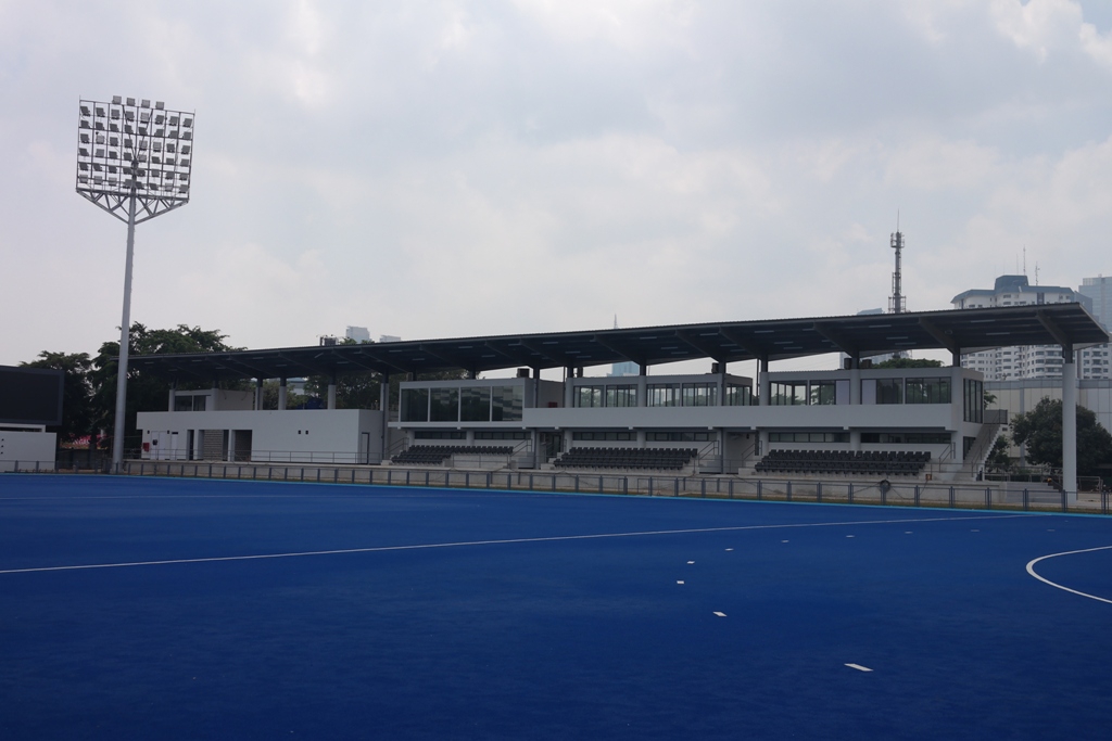 Hockey field 1 (near beach volley field) is an international standard area of 6.755,8 square meters with 208 FOP lamp lighting. This hockey field is international standard, coated with synthetic carpet and equipped with other supporting facilities, such as player’s changing rooms, office spaces, toilets, and mosque, management room, and CCTV Control Room. Gelora Bung Karno Hockey Field has been certified by the International Hockey Federation (FIH).